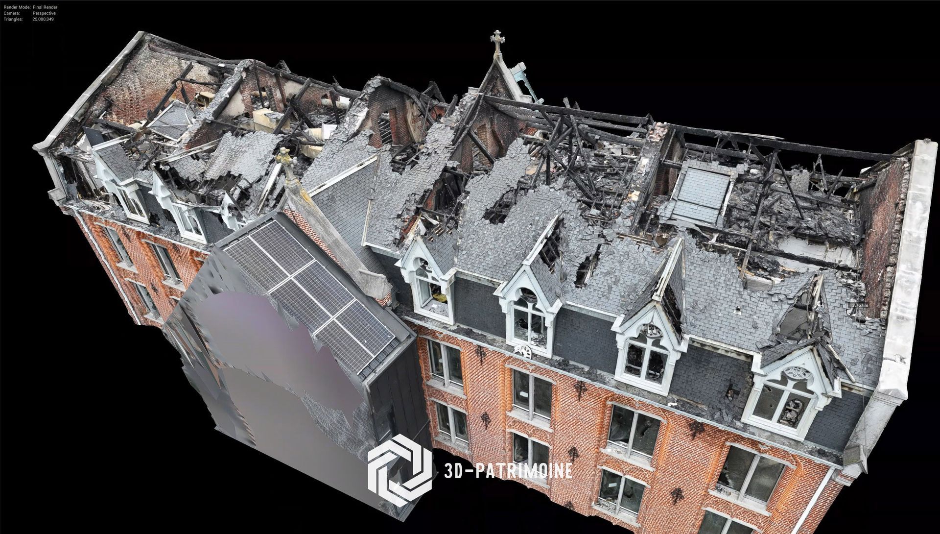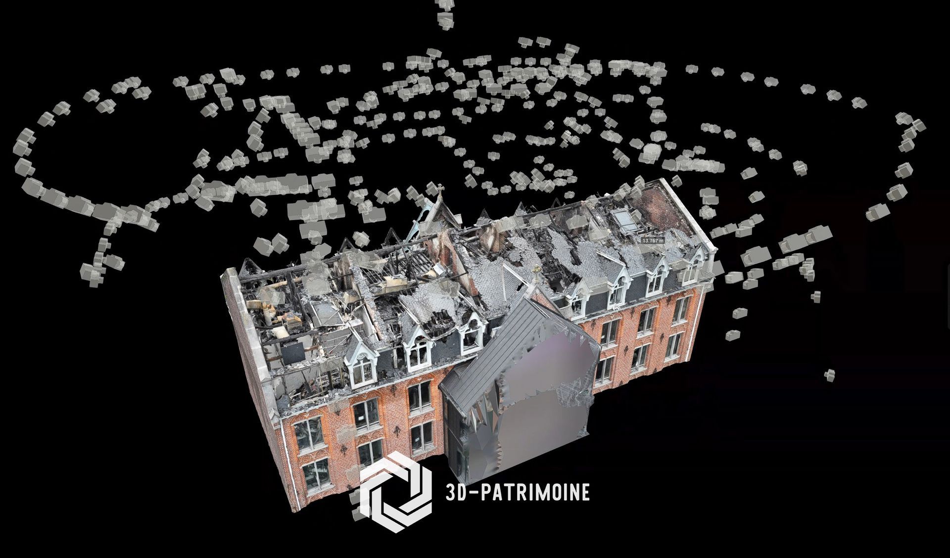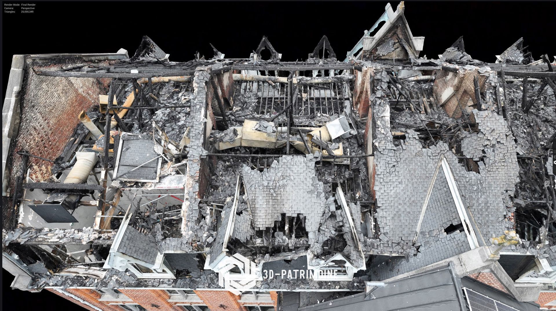 Après l'incendie de la toiture d'un bâtiment dépendant de l'Université Catholique de Lille en Mai 2023, nous sommes intervenus pour réaliser un relevé photogrammétrique des décombres.